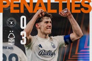 不过与此同时,森林门将奥尔特加却是一球都没有扑到,对手的三个点球两个是击中立柱,最后一个是脚滑打飞。