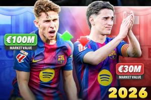 体育资讯03月21日讯 近日德转更新了西甲球员身价,巴萨中场费尔明身价飙升到1亿欧元,而加维则下跌到3000万欧元。