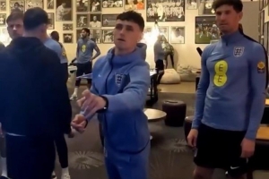 体育资讯3月26日讯 英格兰队正在备战与乌拉圭队的友谊赛,曼城攻击手福登展示了自己的飞镖神技。