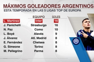 本赛季五大联赛阿根廷球员射手榜: