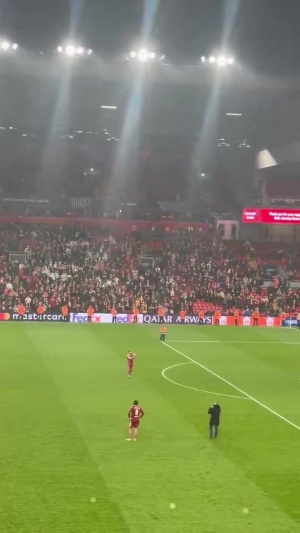 球迷赛后高唱萨拉赫之歌,萨拉赫拍手向球迷致意。