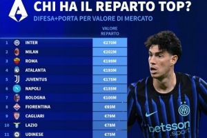 意甲各队防线球员总身价排行